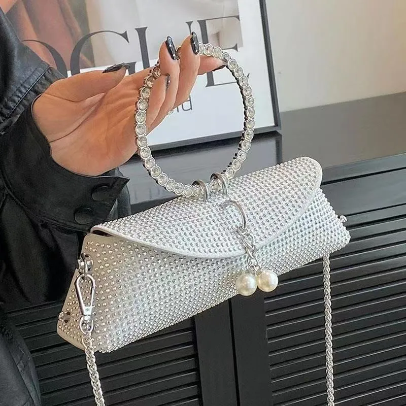 Diamond Rhinestone Bridal Clutch – Sparkly Square Handbag for Wedding, Prom & Evening Parties